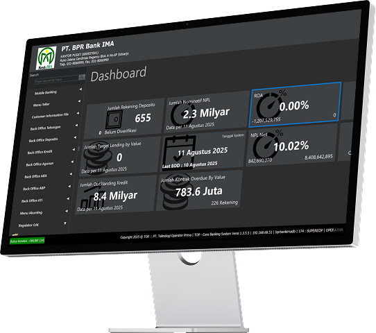 PT Teknologi Operator Prima adalah perusahaan IT yang menyediakan solusi digital untuk BPR dengan fokus pada keamanan, efisiensi, dan integrasi. Kami hadir sebagai mitra strategis untuk mendukung transformasi digital BPR sesuai regulasi dan memperkuat daya saing di era modern.